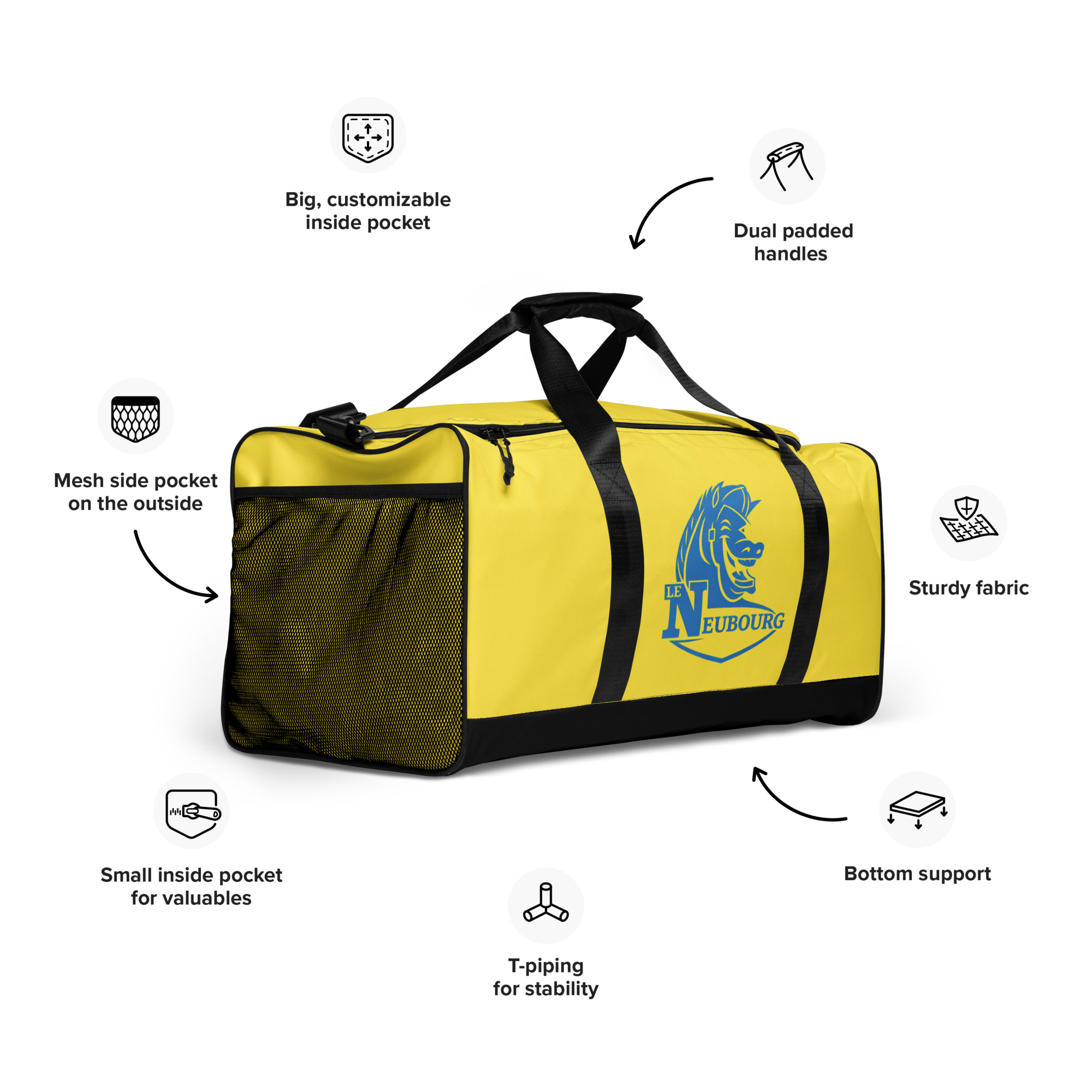 • 100 % polyester avec doublure noire